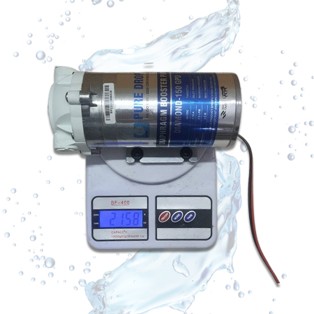 Puredrop 150 GPD RO Diaphragm Booster Pump + 2 Pieces Elbows + Teflon Tape (Input 24 V ) Suitable for all type of domestic Water Purifier. Flow : 1.2 LPM. . Operating Pressure : 80 PSi . Input : DC supply of 24 V . SMPS - AC Input : 140 V to 300 V, Frequency : 47 - 63 Hz. . Working Temperature: 15 C to 65 C . Inlet pressure : 30psi